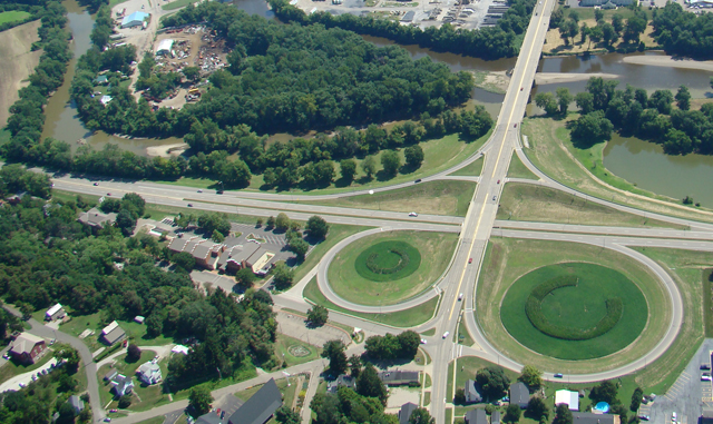 Cloverleaf, The Community 2012 cloverleaf gateway design April 22, 2012 / June 2011 photograph of cloverleaf gateway to Coshocton photoshop design of the 2012 installation: corn and beans